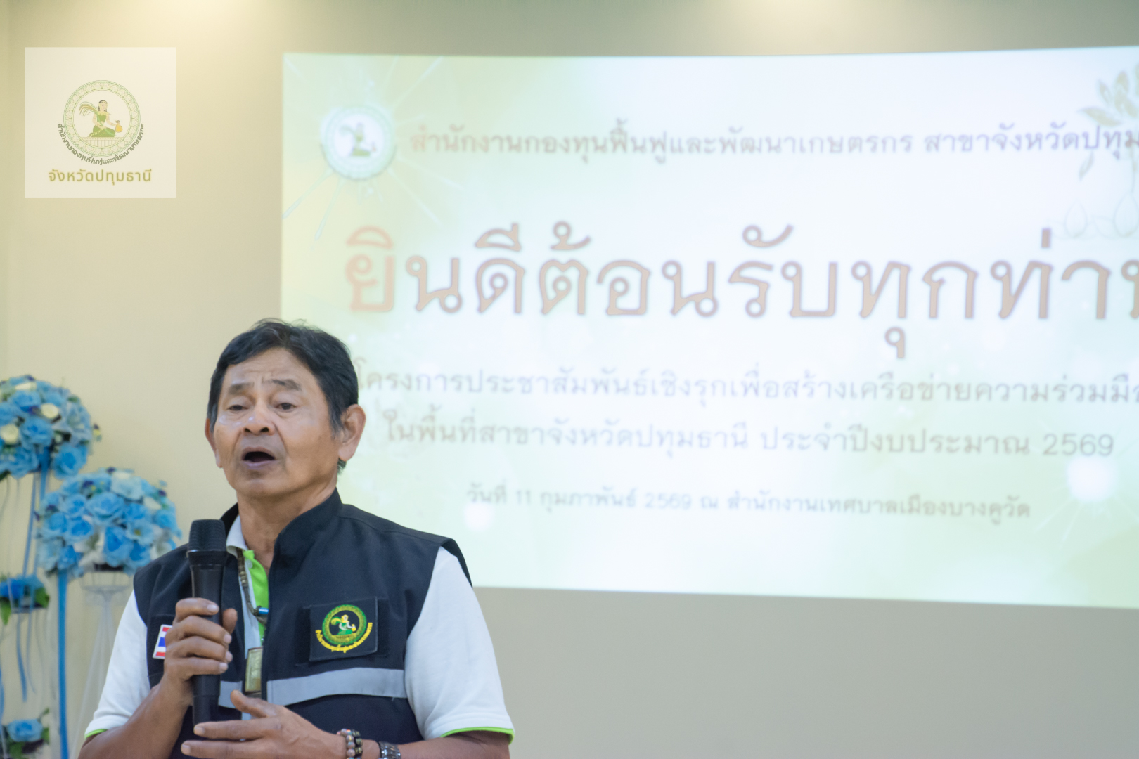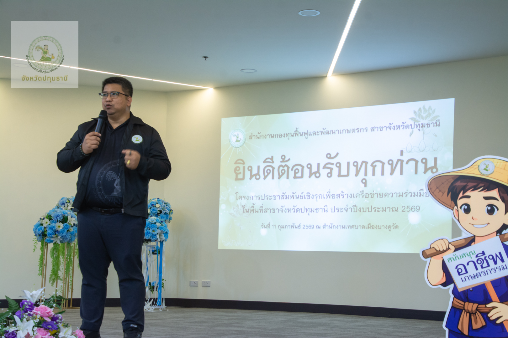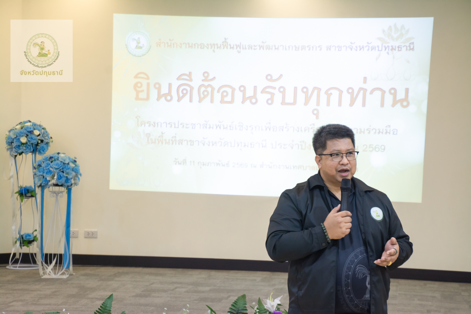 วันที่ 11 กุมภาพันธ์ 2569 สำนักงานกองทุนฟื้นฟูและพัฒนาเกษตรกรสาขาจังหวัดปทุมธานี นำโดย นางสาวจารุวรรณ โฉมศรี หัวหน้าสำนักงานกองทุนฟื้นฟูและพัฒนาเกษตรกร (กฟก.) สาขาจังหวัดปทุมธานี และ นายพรเทพ ซังยัง พนักงานอาวุโส ร่วมกับคณะอนุกรรมการฯจังหวัดปทุมธานี นำโดย นายบุญชวน น้อยฉวี ประธานคณะอนุกรรมการจังหวัดปทุมธานี และ นายวัลลภ สว่างเถื่อน อนุกรรมการจังหวัดปทุมธานี ลงพื้นที่จัดกิจกรรมประชาสัมพันธ์เชิงรุกมุ่งเน้นการสร้างความเข้าใจ เข้าถึงสิทธิประโยชน์ และการฟื้นฟูอาชีพให้เห็นผลเป็นรูปธรรม โดยมี นางวราลักษณ์ ควรพินิจ ผู้แทนกลุ่มองค์กรเกษตรกร พร้อมด้วยสมาชิกเข้าร่วมกว่า 50 ท่าน บรรยากาศเต็มไปด้วยการแลกเปลี่ยนเรียนรู้ที่อบอุ่นหัวใจสำคัญในการขับเคลื่อนครั้งนี้