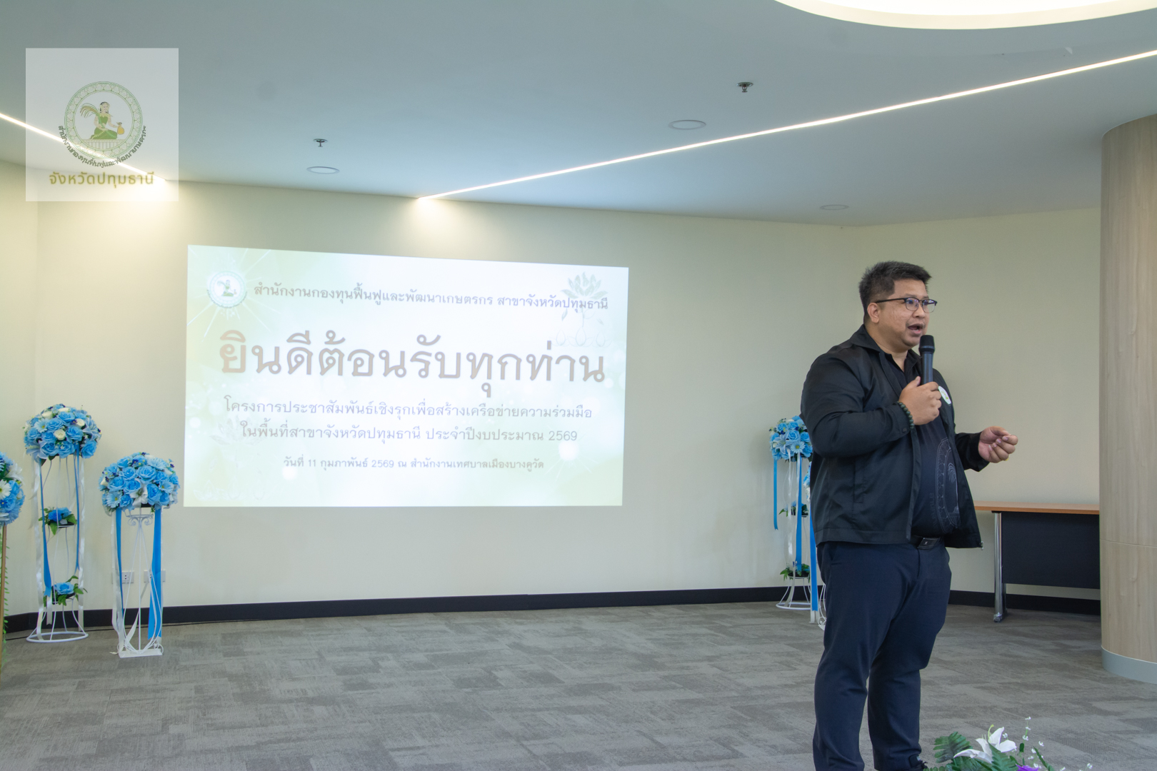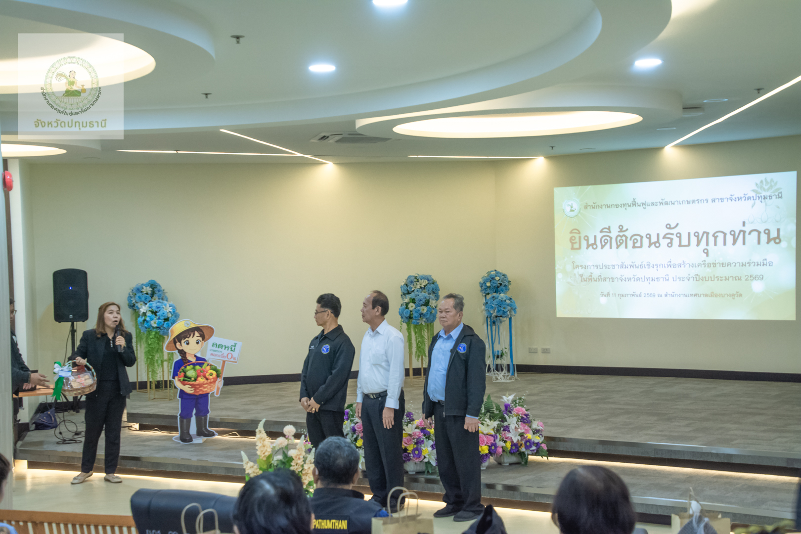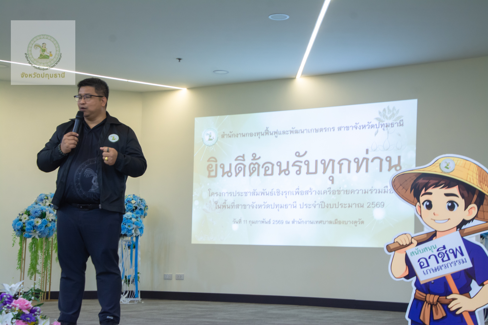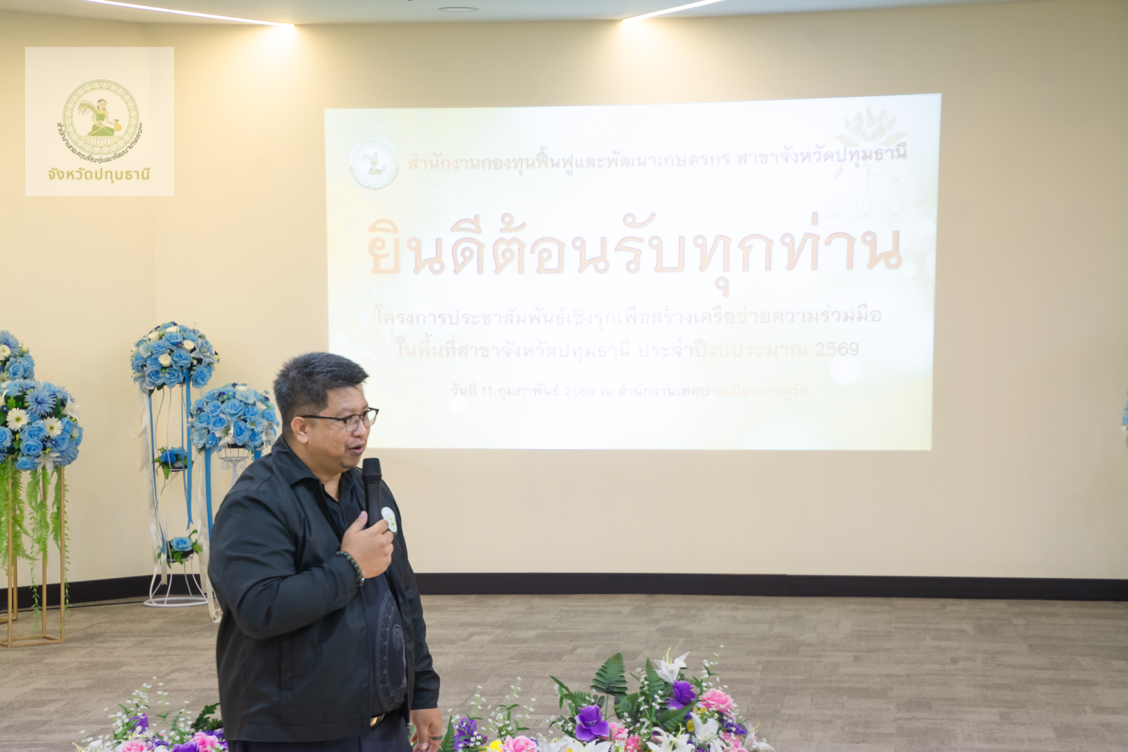 วันที่ 11 กุมภาพันธ์ 2569 สำนักงานกองทุนฟื้นฟูและพัฒนาเกษตรกรสาขาจังหวัดปทุมธานี นำโดย นางสาวจารุวรรณ โฉมศรี หัวหน้าสำนักงานกองทุนฟื้นฟูและพัฒนาเกษตรกร (กฟก.) สาขาจังหวัดปทุมธานี และ นายพรเทพ ซังยัง พนักงานอาวุโส ร่วมกับคณะอนุกรรมการฯจังหวัดปทุมธานี นำโดย นายบุญชวน น้อยฉวี ประธานคณะอนุกรรมการจังหวัดปทุมธานี และ นายวัลลภ สว่างเถื่อน อนุกรรมการจังหวัดปทุมธานี ลงพื้นที่จัดกิจกรรมประชาสัมพันธ์เชิงรุกมุ่งเน้นการสร้างความเข้าใจ เข้าถึงสิทธิประโยชน์ และการฟื้นฟูอาชีพให้เห็นผลเป็นรูปธรรม โดยมี นางวราลักษณ์ ควรพินิจ ผู้แทนกลุ่มองค์กรเกษตรกร พร้อมด้วยสมาชิกเข้าร่วมกว่า 50 ท่าน บรรยากาศเต็มไปด้วยการแลกเปลี่ยนเรียนรู้ที่อบอุ่นหัวใจสำคัญในการขับเคลื่อนครั้งนี้